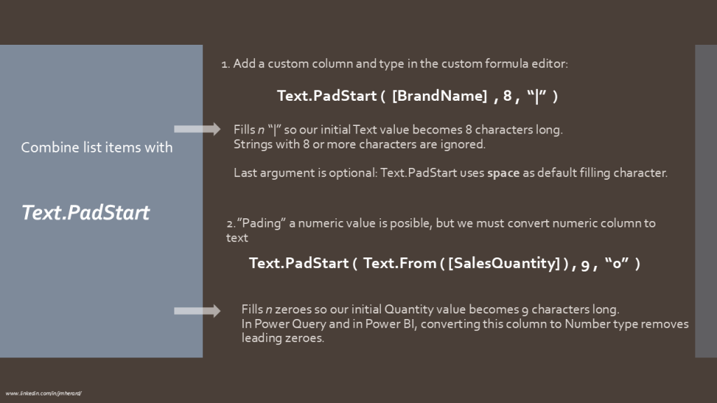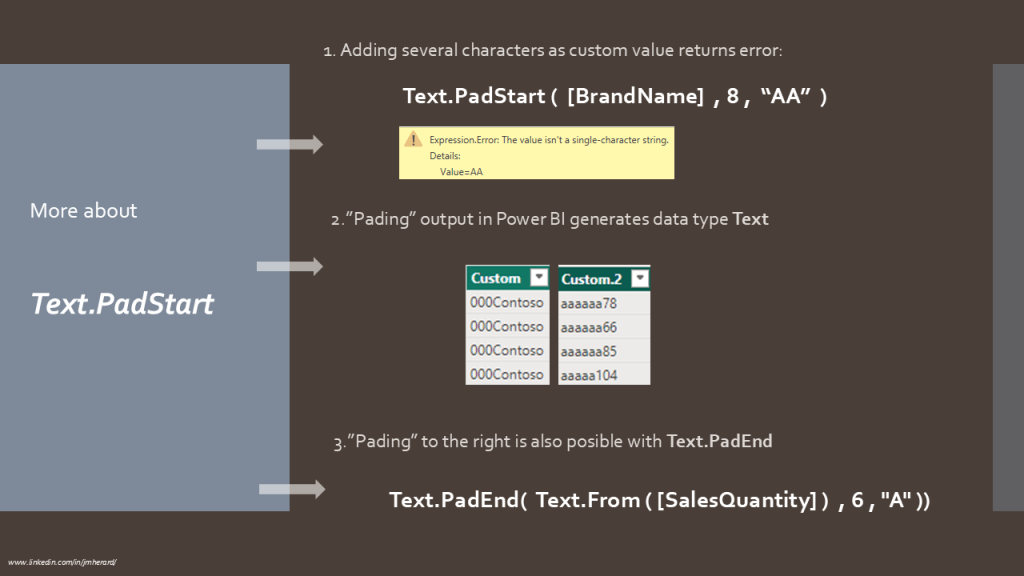 If you use Text.PadStart without custom character, the function add spaces to the initial string.
