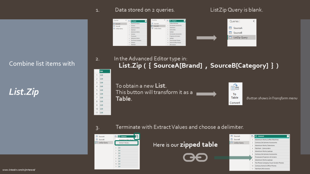 Step4 = List.Combine ( {{ Step2} , {Step3}} ),